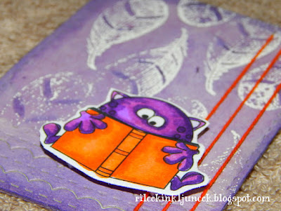 Nazadnje sem še s Copic markerji pobarvala simpatičnega malega pošastkota, ki bere knjigo. Zdaj ko gledam povečano sliko, ugotavljam, da bi si počasi morala omisliti očala, saj sploh nisem opazila, da sem barvala čez črte.