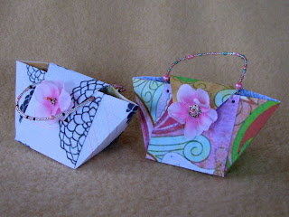 Darilne torbice so me kar navdušile ... prejšnji vikend sem izdelala še drugo varianto, ki je bolj 3-D. Povečana na ustrezno velikost bi bila primerna tudi za piškote.