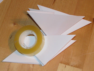 Lahko pa bi jo zgibala tudi drugače, moram še premisliti ... brez lepljenja bo bolj težko. Lepilo sem potrebovala le, da sem pavs papir pritrdila na ogrodje.