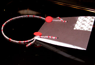 Po obveznem zvijanju papirja pride na vrsto zame najlepši del ... krašenje! Najprej izdelava ročajev iz perlic in nato še zapora. Tu sem se nemalo namučila, saj nisem hotela lepiti. Pri prvi sem uporabila kot zatič bunkico, pri drugi pa žičko ... nisem pa še povsem zadovoljna.