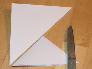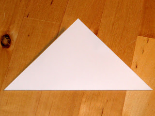 Ta trikotnik se še enkrat prepogni na pol. Nastane manjši trikotnik.
