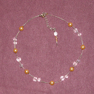 Zanjo sem izbrala vijolično-prozorno kombinacijo steklenih perl. Aja, ker je vse skupaj na vratu delovalo pretežko, sem odstranila zgornji dve verižici in pustila le spodnjo. Ker sem potem vse skupaj hitro zapakirala in odnesla na pošto, nisem uspela fotografirati.