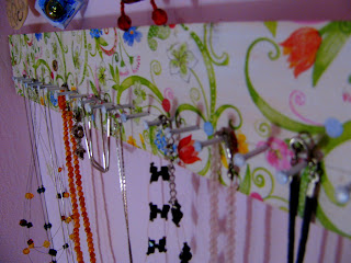 Da se vrnem k nakitu. Bila sem na porodniški, na začetku sem imela veliko dela z malim Kljunčkom, pa tudi računalnik v delovnem kabinetu na podstrešju ni bil najbolj priročen ... ko sem si spomladi nabavila prenosnika z brezžično povezavo, se je začelo! Zaplavala sem v blogerske vode, ki so me zapeljale do Otoka zakladov. Tam sem črpala in še vedno črpam (sama pravim, da kumuliram navdih) zamisli in tehnike pridnih rok.