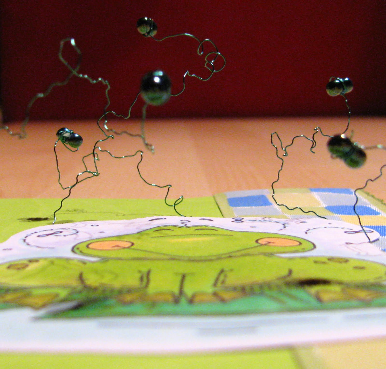 Rdeče-zelena kombinacija: rdeča in zelena sta kontrastni barvi. Stilisti pravijo, da se je tej kombinacije pri oblačenju najbolje izogniti. Res se ne bi dobro počutila v preobleki tropske žabe. Vendar v stanovanju, sploh v moji kuhinji jo pogosto uporabljam. Mogoče tudi zato, ker je stena bolj zamolklo rdeča (najbrž ima malo modre) in zelena, ki jo vsakič izberem, je zelena mladega listja, brstičev. Ta odtenek mi je tudi najbolj všeč. Rdeča daje prostoru moč, energijo, zelena pa svežino.