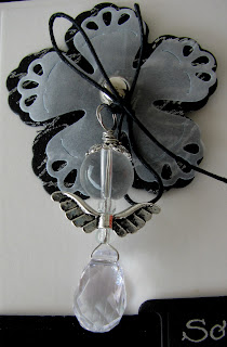 Osrednji okrasek je zlato srce, ki sem ga izrezala iz tube šampona. Lani sem odkrila zame ustrezen šampon, ki mi razmasti lase, a mi ne pretirano izsuši lasišča. Uporabna pa je tudi embalaža, tokrat sem jo embosirala s pisavo. Srce sem izrezala ročno. Zadnji okrasek je čipka iz kartona, skozi katero sem speljala 5-centimetrski trak iz satena z zlatim robom. Tako nabran naredi krasen efekt.