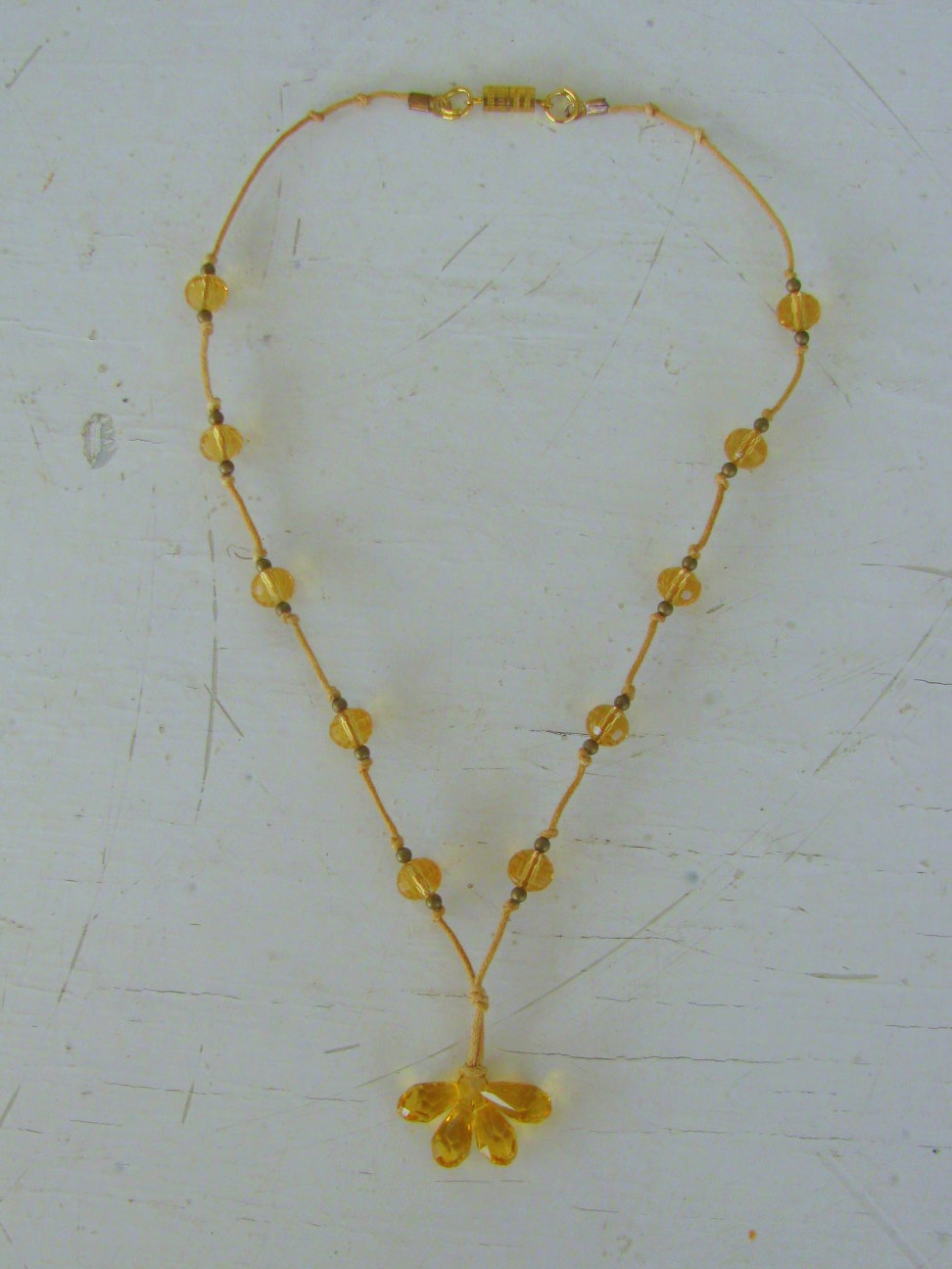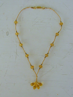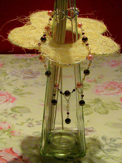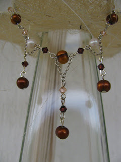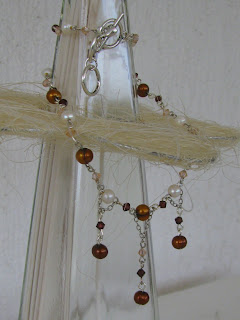 Pa sem takoj eno vrvico uporabila - tisto kavno. Izdelala sem tale preprost in romantičen kos nakita, ki mi je zelo všeč, saj je zelo nosljiv.