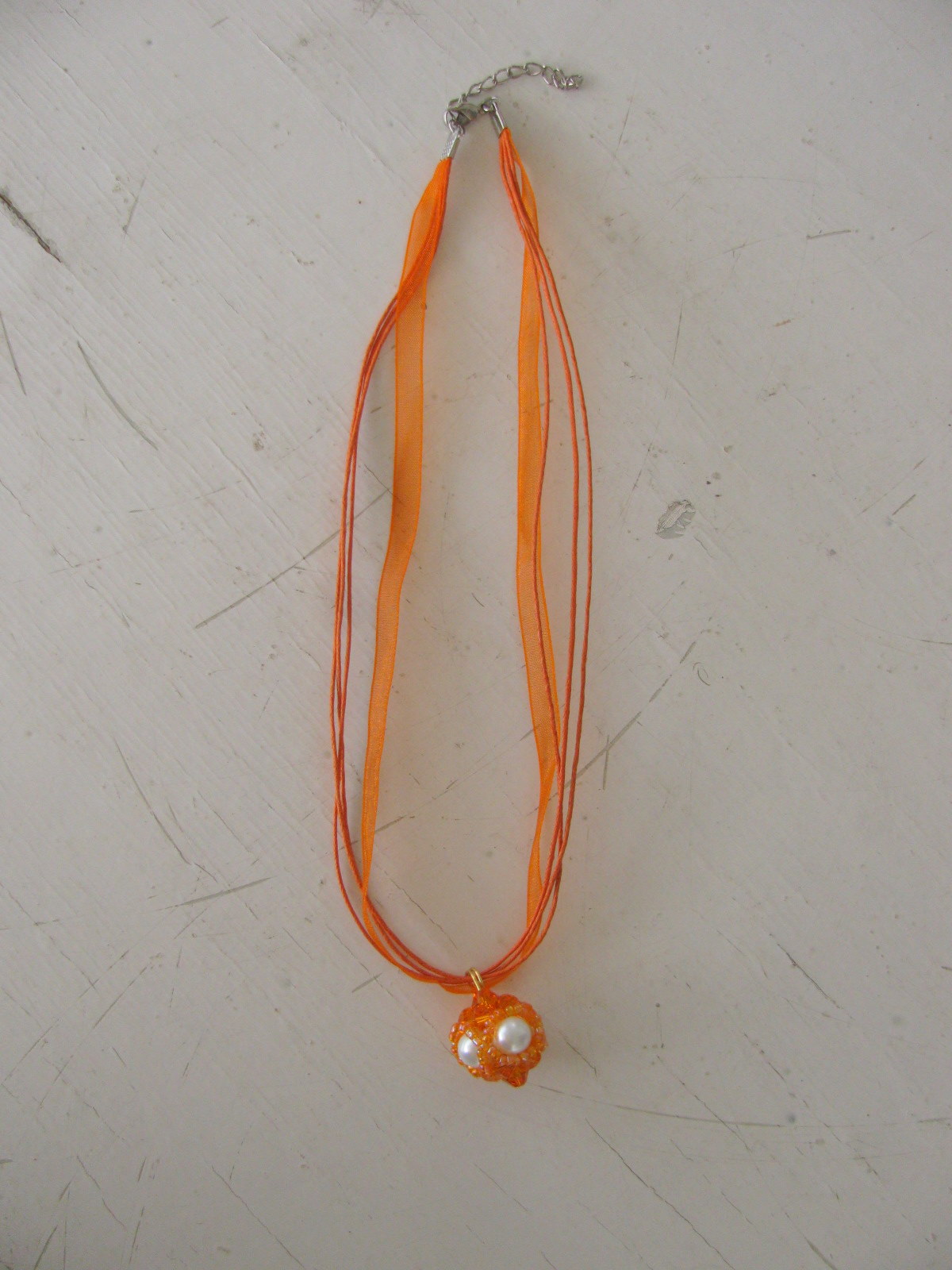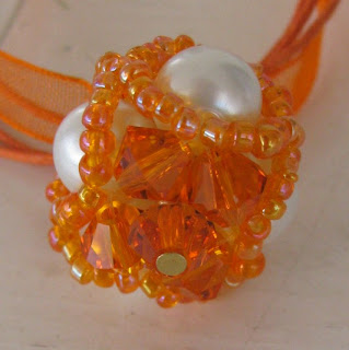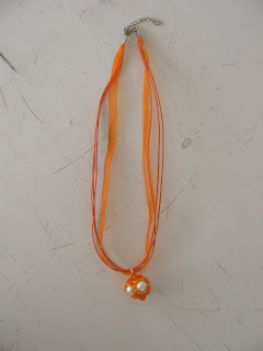 Oranžna mi je všeč in par kosov oblačil z oranžno mi je prav všeč in jih rada nosim. Se rada lepo oblečem, vendar ne slepo sledim modnim smernicam. Oblačila, v katerih se dobro počutim, pa nosim dokler se ne znucajo. Torej, večkrat se mi je zgodilo, da bi mojo opravo dopolnil nakit v oranžni, a ga nisem imela. Do danes! Kar težko sem nabrala ves material, da sem se lahko lotila podviga. Model sem morala prilagoditi materialu, ki sem ga imela na razpolago.