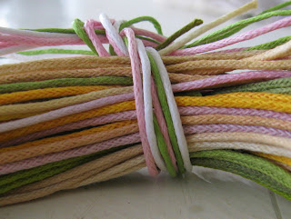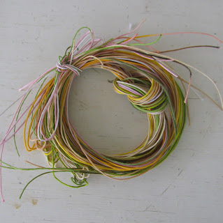 Zgornji venček je izdelek včerajšnjega dne. Barve - barve - barve ... nikoli jih ni dovolj! Vrvice iz Frogwila, katerih barv sem se že malce naveličala, sem prebarvala.