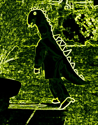 Zgoraj sem se malo poigrala z novimi funkcijami v Picassi. Tako tiranozaver zgleda strašljivo, sicer pa je bil zelo nežen in ljubeč. Kot vedno.
