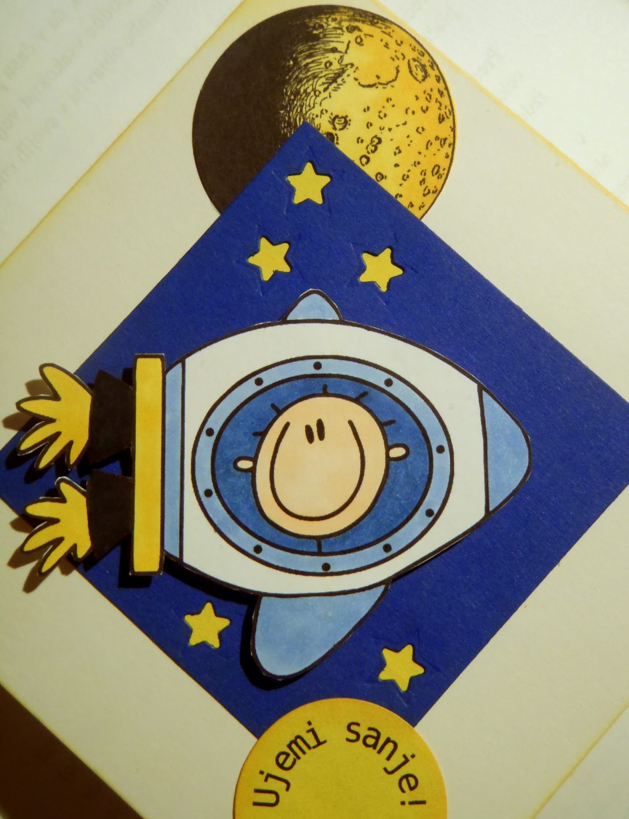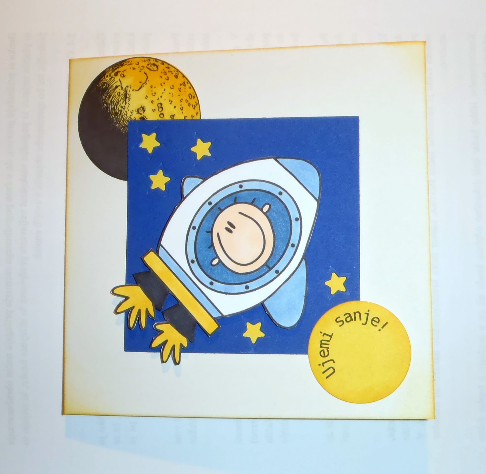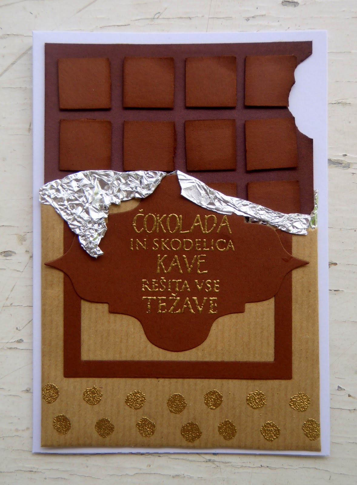 S tole čestitko pa sem se malo namučila, saj sem za spodnji papir izbrala preveč debelega in hrošček ni uspel pregrizti vseh plasti voščilnice. Sem jo že hotela vreči stran, potem pa sem si pomagala s skalpelom in rešila situacijo.