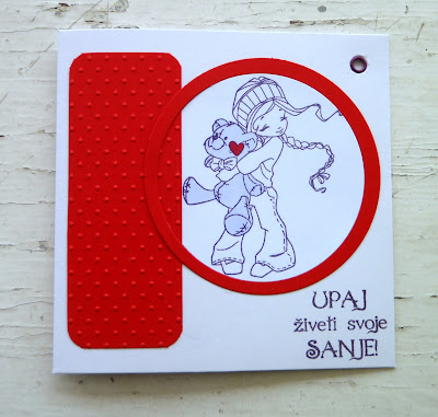 To je še od vikend produkcije. Danes sem fotografirala in objavljam. Na zalogo sem izdelala dve čestitki ob rojstvu otroka: eno za deklico in eno za dečka.Tako sem lahko uporabila tudi novo štanco s slončkom, ki mi je zelo simpatična.