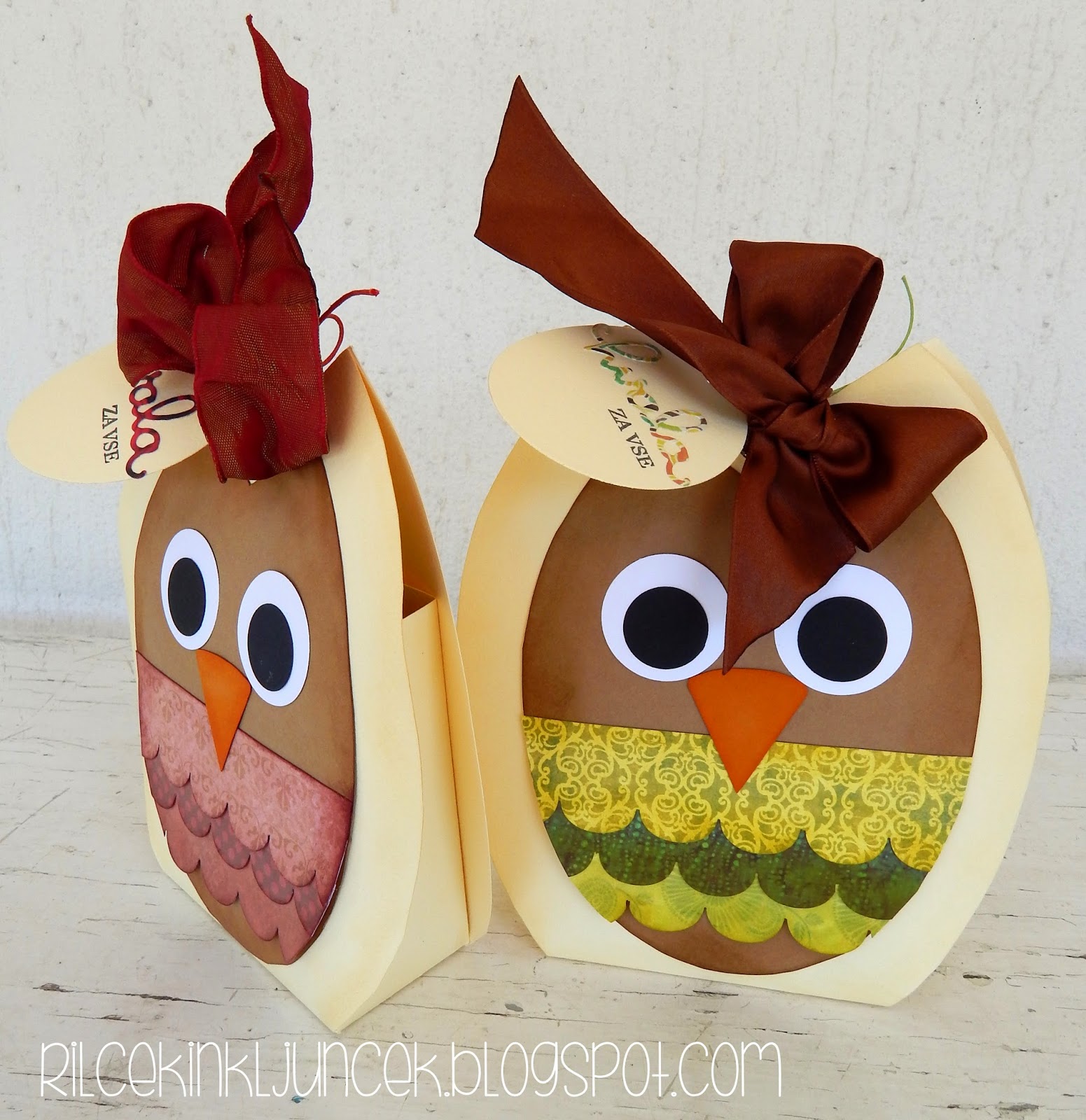 Moj malček letos zaključuje vrtec - prihodnje leto bo prvošolček, zato smo se starši potrudili, da smo pripravili zabaven program ter vzgojiteljice simbolično obdarili. Izdelala sem 2 škatli in 5 voščilnic v obliki sove.