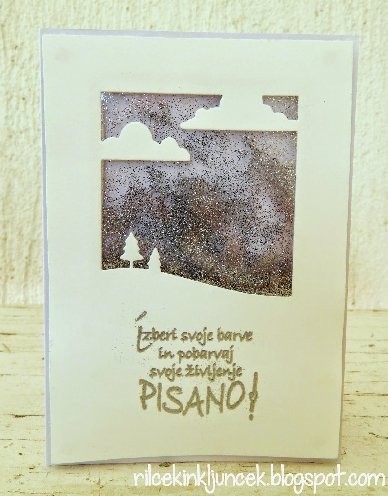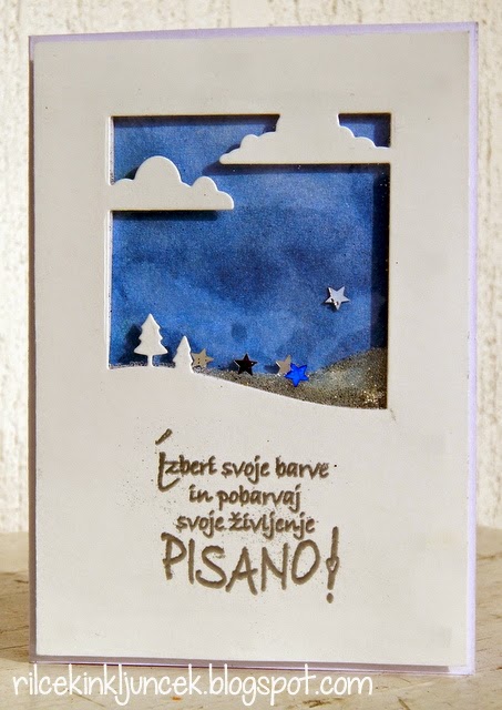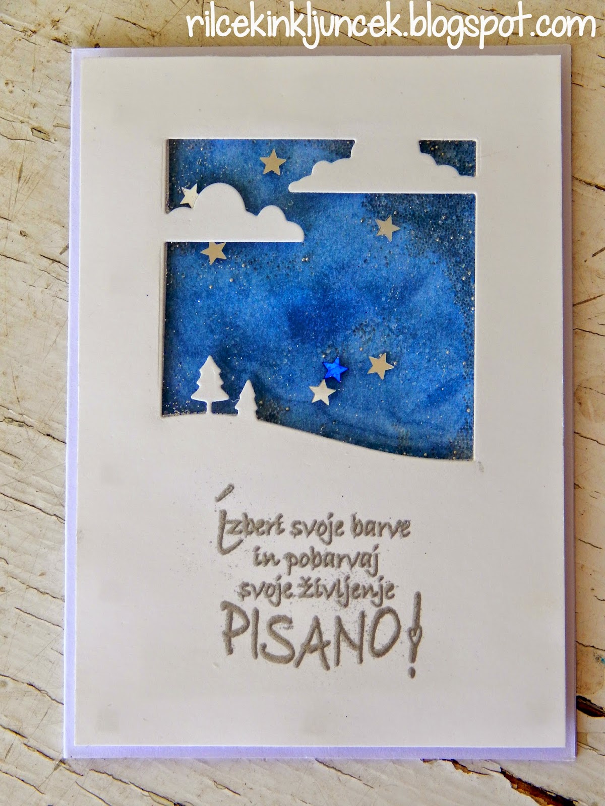 Malo sem se poigrala s šablono, ki sem jo kupila že zdavnaj - najprej sem jo nameravala uporabiti za letošnje zimske voščilnice, potem pa sem spremenila načrt, ker mi je zmanjkalo časa.
