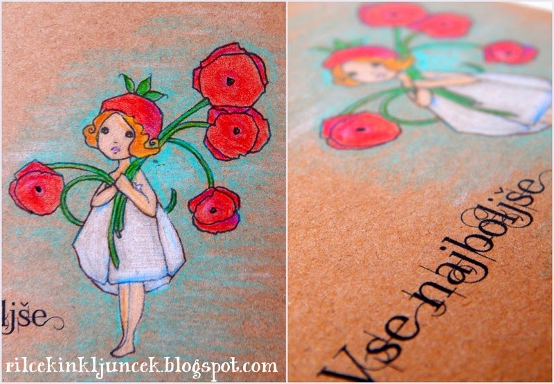 Všeč so mi enoplastne voščilnice na natur papirju in pobarvane z barvicami. Sinove Giotto barvice so zelo dobro prekrivne, zato ponavadi skočim po njegovo peresnico ... na koncu vedno preveri, ali sem vse barvice vrnila na pravo mesto. Nestrpno je čakal, da sem končala, takoj nato je odnesel peresnico v torbo - da je ne pozabi za v šolo - čeprav je še cel teden počitnic vmes. Tega nima po mami ...