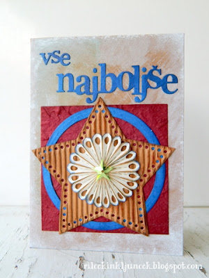 Voščilnica je podobna prejšnji, le da je pri tej izpostavljen napis Najlepšega para, "Vse najboljše". Tokrat sem belo akrilno barvo uporabila za ozadje.