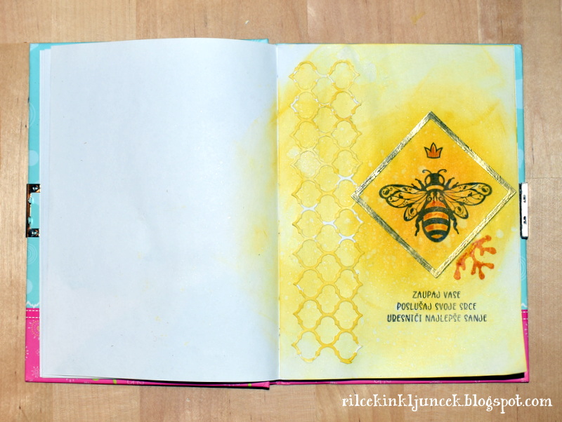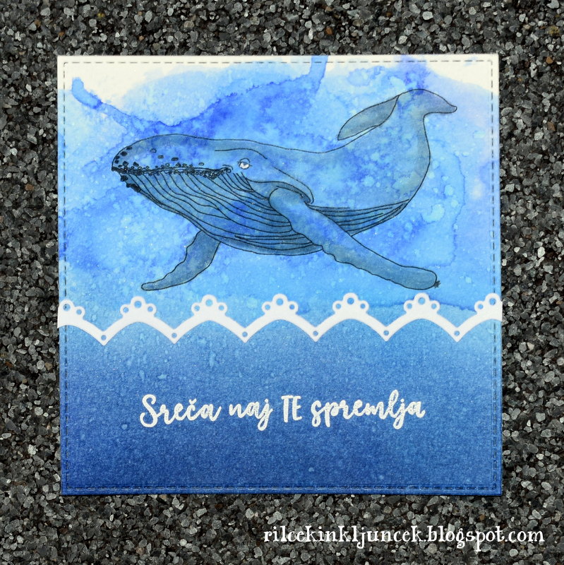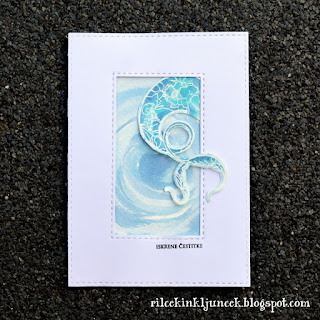 Sicer sem najprej nameravala uporabiti spotlight tehniko, a z rezultatom nisem bila najbolj zadovoljna, zato sem se odločila za preprosto enoplastno voščilnico, za katero sem uporabila kotno štampiljko vrtnice.