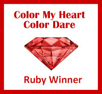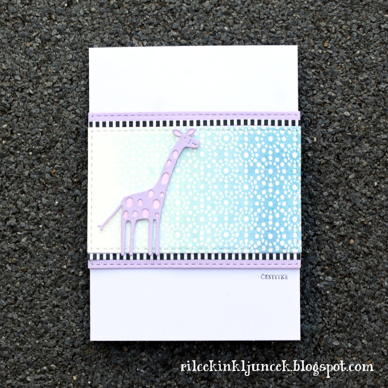 Najprej sem odtisnila štampiljko, nato sem podobo pobarvala s Copic markerji, ker sem bila s pobarvanim zadovoljna, sem odtisnila še preprosto voščilo ter dodala tri vijolične kristalčke.