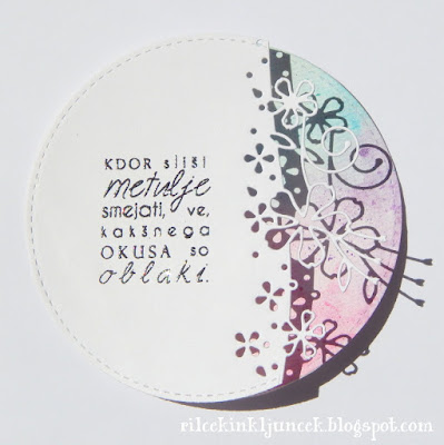 Ker je vezenina v tej krasni barvni kombinaciji zelo lepo zapolni voščilnico, drugega nisem dodajala, le preprosto voščilo. Potem pa sem se še malo poigrala s fotoaparatom pri fotografiranju.