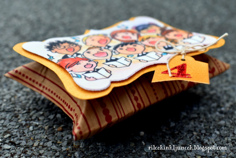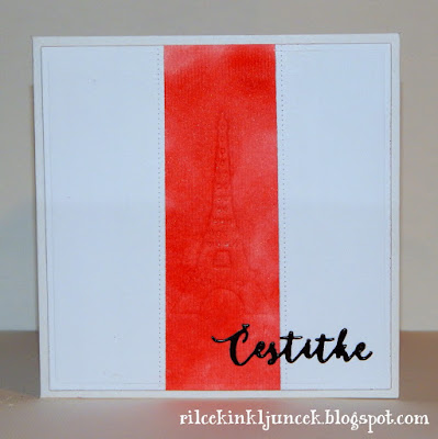 Med gledanjem televizije pogosto vzamem barvice ali Copic markerje in barvam natisnjene podobe digitalnih štampiljk. Med najbolj priljubljenimi so podobe A Day for Daisies, na srečo jih imam kar nekaj. Pobarvano plesalko sem obrezala in zalepila na osnovo iz eko papirja. Robove sem še poudarila tako, da sem narisala valovid rob.