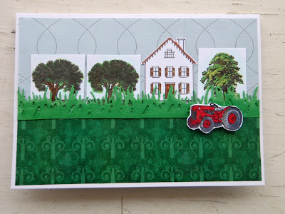 Že prej sem iz iztrgane strani izrezala pravokotnike in trikotnike za hiške, ki sem jih pobarvala z različnimi barvami Izink tušev. Na strehe sem belo barvo nanesla s šablono. Nato sem vse zlepila skupaj. Za okna sem uporabila washi trak in s črnim tankim flomastrom dodala detajle. Na koncu sem nalepila tri kokoške ... mi jih imamo doma.