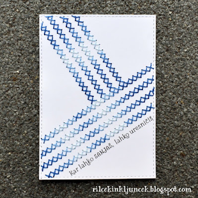 Naredila sem čisto preprosto enoplastno voščilnico: najprej sem natisnila vodne mehurčke, jih toplotno embosirala z belim reliefnim prahom ter vogale senčila s svetlomodrimi odtenki Distress Inkov, nazadnje sem še odtisnila voščilo s črnim tušem. In voščilnica je narejena.